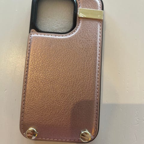 Samsung telefondeksel i oransje farge med ringfeste. Dekselet har utskjæringer for kamera og knapper, og en ring i metall for feste eller bæring. Materialet ser ut til å være en kombinasjon av plast og kunstlær.