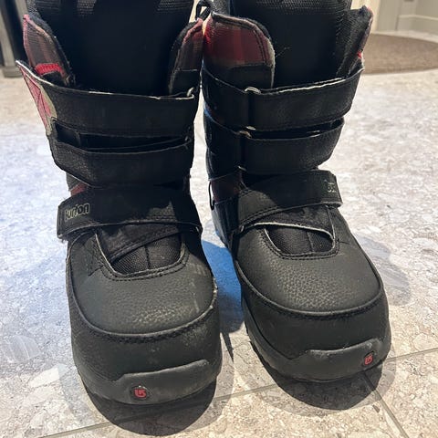 Burton snowboardstøvler i grå farge, størrelse 36,5 (litt små i størrelse så mer 36). Støvlene er designet for bruk ved snowboarding og gir støtte og komfort under aktivitet.