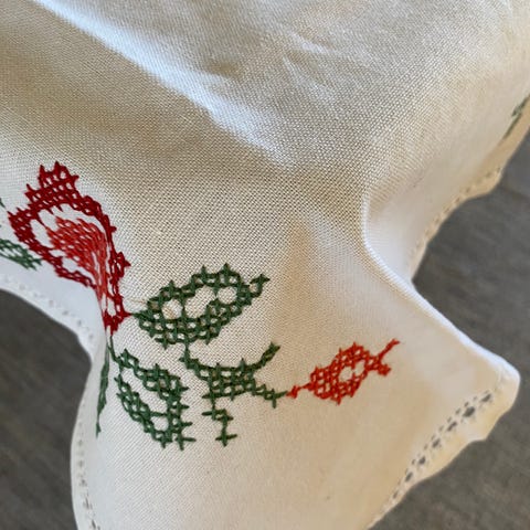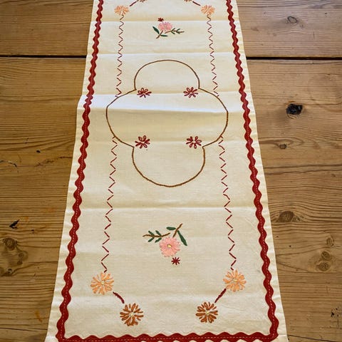 Pen, lang, gammel brodert duk/løper. Alle annonser: 3 for 2.