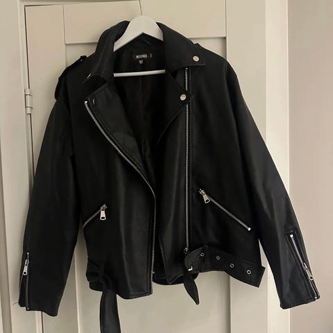 Selger en svart jakke i imitert skinn fra ONLY, størrelse S – Tall (fra tall-kolleksjonen, passer godt for høyere kvinner / lange armer).