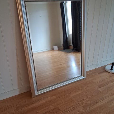 IKEA rundt speil med ramme i tre. Speilet har en rund form og en ramme laget av tre, noe som gir et naturlig og enkelt uttrykk. Egnet for bruk i ulike rom som gang, stue eller soverom.