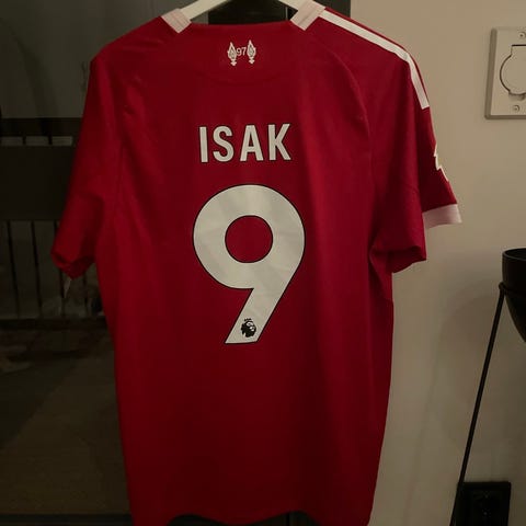 Ubrukt Nike Liverpool fotballdrakt i størrelse 6-9 måneder. Drakten består av gul trøye, shorts og sokker.