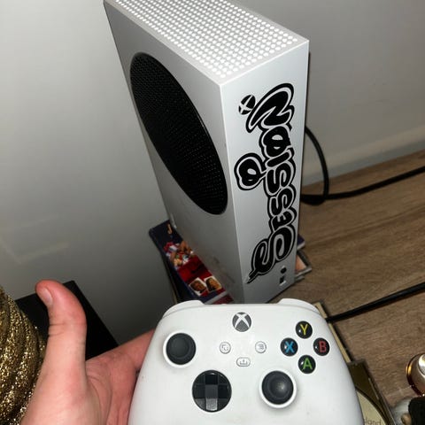Følger med to hvite kontrollere, en ble kjøpt med konsollen fra Elkjøp for et par år siden, den andre er kun noen måneder gammel.