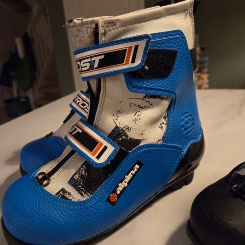 33. Skoene har borrelåsfeste og en innersåle som kan tas ut, se vedlagt bilde. Brukt av to eiere.