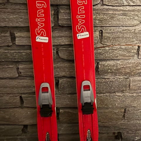Skiene har bindinger for feste av sko. Smørefrie. Alt pent brukt.
