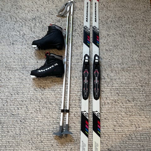 Madshus langrennsski med staver fra Rex, og sko fra Rossignol.