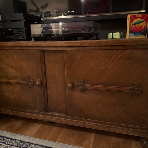 • Treverket virker noe tørt og ville hatt godt av en omgang med møbelrens og olje eller voks.