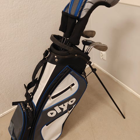 Links/ Venstre Olyo golfsett med ekstra 5-jern fra Wilson. Totalt 10 køller.