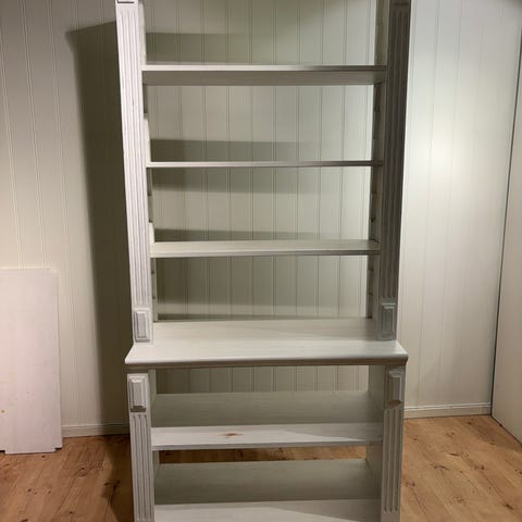 Pent brukt garderobe hylle til salgs for å henge opp jakker, plass til sko i alle hyller + oppbevaring på toppen.