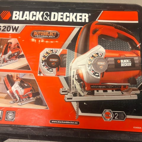 Black & Decker CD301 stikksag med en effekt på 370 watt. Noen ekstra sagblad medfølger. Lite brukt