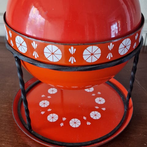 Selger en flott retro bolle fra Cathrineholm fra deres Club Celebration Norway kolleksjon. Hvit med striper i blått og rødt.