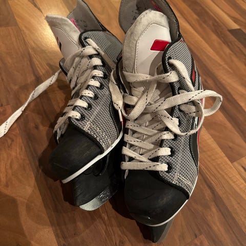 Madshus ishockeyskøyter for barn i størrelse 27. Skøytene er designet for ishockey og har svart og hvit farge. Egnet for barn som spiller ishockey.
