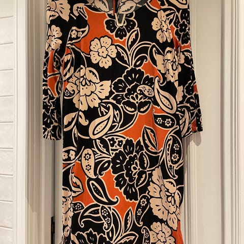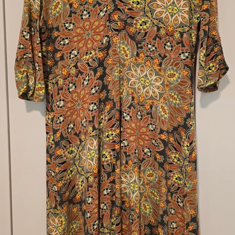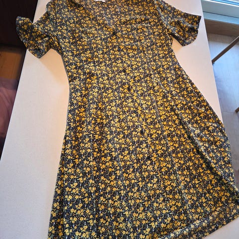 Selger en hverdagskjole fra Ellos i flerfarget mønster, str38.