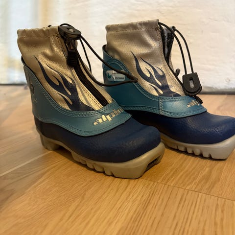 Alpina Classic langrennssko i blått og sølv. Skoene har en høy ankelstøtte og solid yttersåle med feste for langrennsski. Passer til bruk ved langrenn og skiaktiviteter.