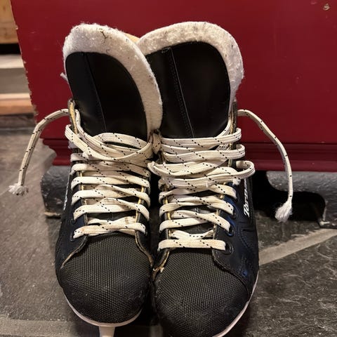 Jofa ishockeyskøyter for barn i størrelse 36. Skøytene er designet for ishockey og har svart farge med hvite detaljer.
