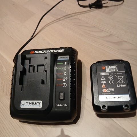 Eldre batterilader fra Black & Decker. Ingen skader.