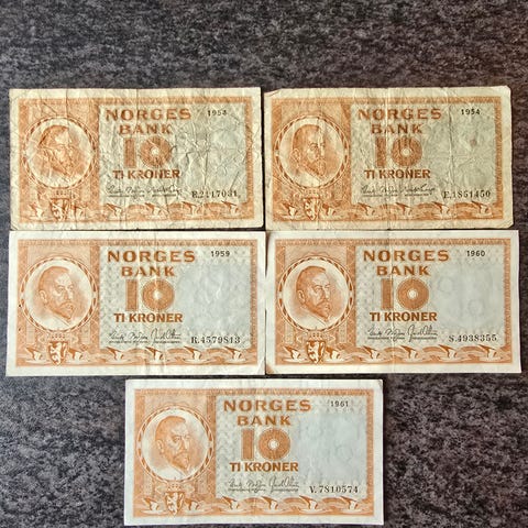 1973 - 1978. Tikrones sedler 11 stk. Kvalitet som vist på bildet. Kan sendes mot Postens takster og emballasje. Se øvrige annonser ved ønske om samsending.