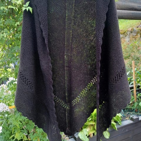 Hjemmestrikket sjal i plantefarget ullgarn
