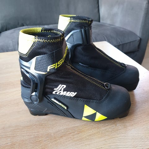 Fischer JR Combi sko. Gode til både klassisk og skøyting. Skoen er fortsatt i god stand. Ingen defekter. Borrelåse, glidlås og snøremekanismen fungerer som det skal.