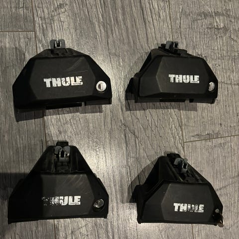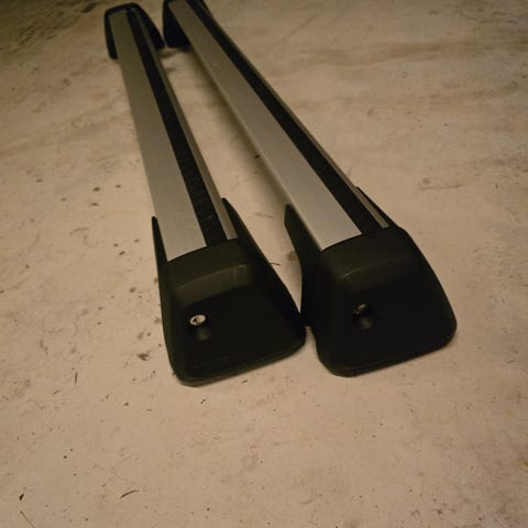 Thule takstativ med føtter passende til Volvo V60 2011 mod. Freeride sykkelstativ kan kjøpes ekstra for 300 kr stykket.