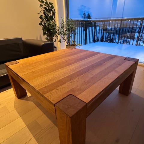 Bordet er tungt og laget av ekte tre