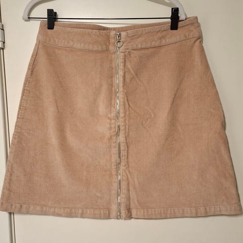 Va Vite Cordfløyel skjørt i beige farge, størrelse 36 for dame. Skjørtet er laget av cordfløyel materiale og har glidelås på baksiden.