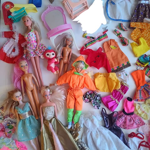 Her er en liten samling med barn og babyer som passer til Barbie med litt klær og tilbehør