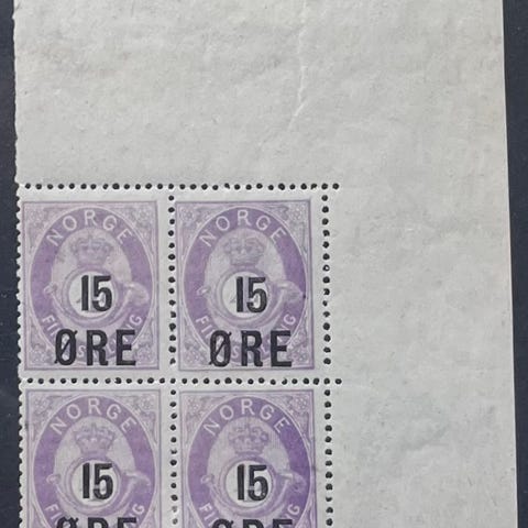Vanskelig blokk å finne, flisetagget, to merker er postfriske, to er hengslet. Sk = 670kr ++