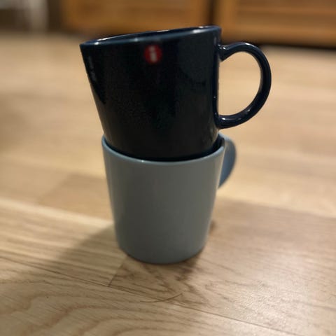 Iittala Teema kopp i blå farge. Koppene er laget for bruk i mikrobølgeovn og oppvaskmaskin, og passer til daglig bruk i kjøkkenet.