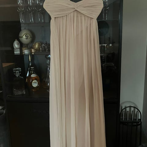 Festkjole / ballkjole i dus rosafarge selges billig. Kjøpt på ferie i Malaysia og merket heter Be+Be. Størrelse S, men er romslig i størrelsen. Lengde 147 cm fra topp skulder ned til gulv.