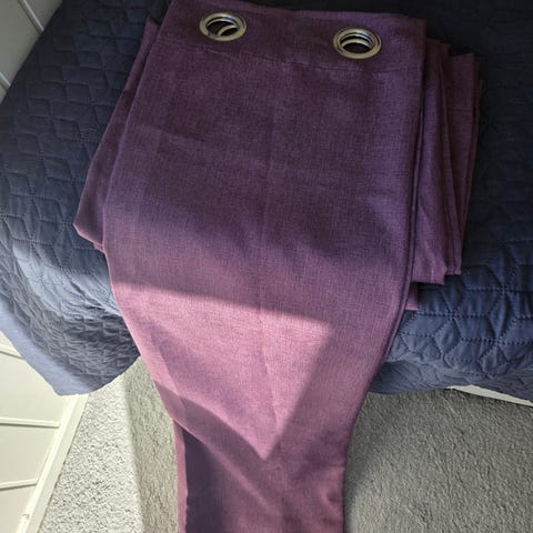 Mørkelilla gardiner lagd av silke stoff.
