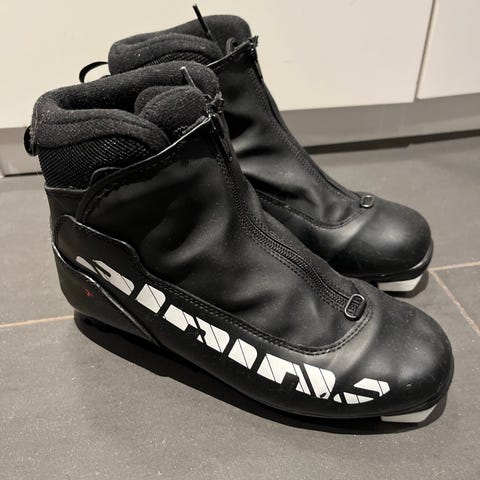 Alpina T5 Plus langrennsstøvler i svart farge, størrelse 40. Støvlene har glidelås foran for enkel påkledning og er designet for langrenn. Materialet er slitesterkt og egnet for vintersport.