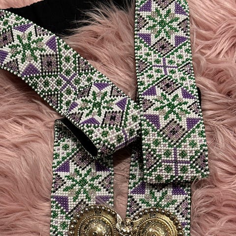 Lite brukt og i god stand. Livvidde 77 cm- høyden på vest er 42 og skjørtet er 88 cm langt.