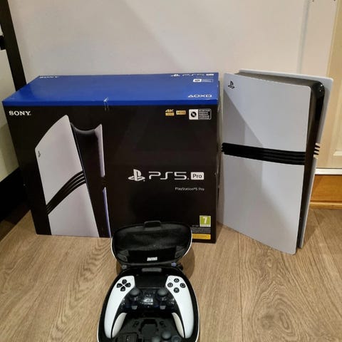 PlayStation 5 Pro spillkonsoll selges . Konsollen har avansert maskinvare for spillopplevelser i høy kvalitet.