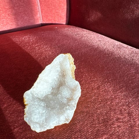 Liten mineral-/steinprøve med synlige krystaller, naturlig og urørt. Fin som samlerobjekt, dekor, studieprøve eller gave til noen som liker steiner og geologi.