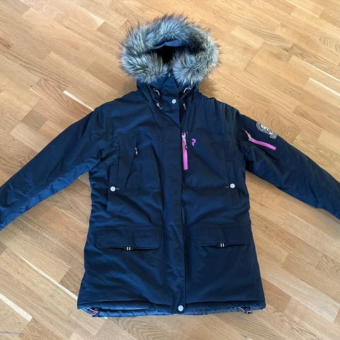 Peak Performance Vinterjakke for dame i størrelse L. Jakken er rosa og laget av dun, noe som gir god isolasjon og varme. Egnet for kalde værforhold. Pent brukt.
