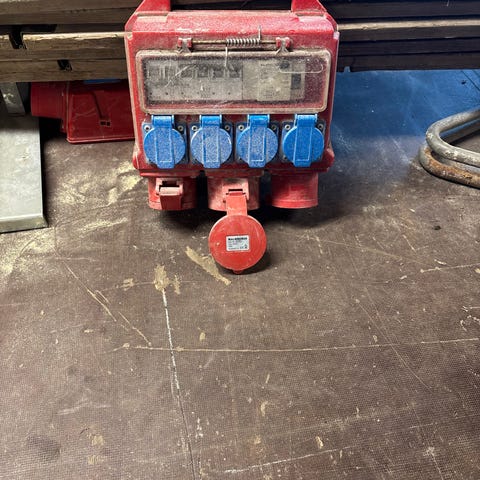 32A undersentral med 8 16A 1 fase uttak. Deksel over sikringer mangler.