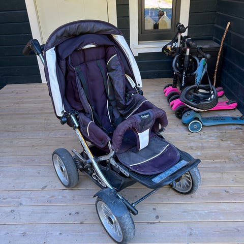Vogna kan ikke legges i full liggestilling. Passer nok best for barn fra 1 års alder. God kalesje som kan utvides med glidelås. Det følger også med ett storm trekk og ett liggeunderlag som kan klikkes på vogna. Fleece på ene siden og samme stoff som vogna på andre siden.