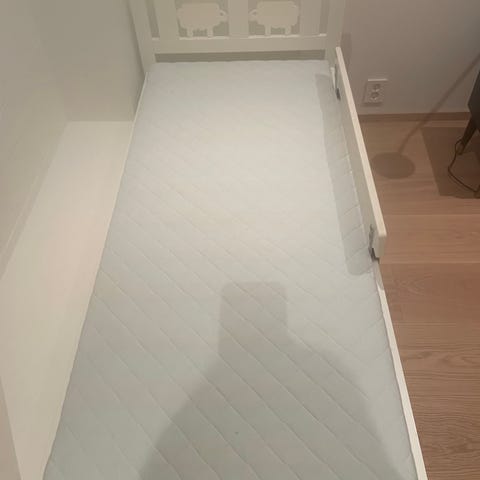 IKEA juniorseng i hvit farge. Passer for barn og gir en trygg soveplass tilpasset barnets størrelse.