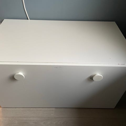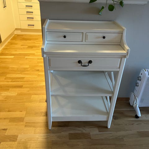 Mål: 1,10 m i lengde, 38 cm dyp, 67cm høy. Skuffer og skap funker som de skal. Hentes i 1. etasje på bakkeplan, kan være behjelpelig med å bære :-)