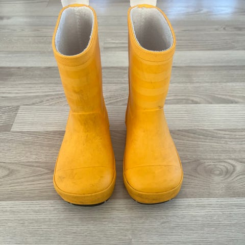 Tretorn gummistøvler i størrelse 25. Kjøpt ny og brukt til eitt barn ein sesong. Lite brukt. Innersolen i høgre sko er litt slitt, men ellers er støvlane i god stand
