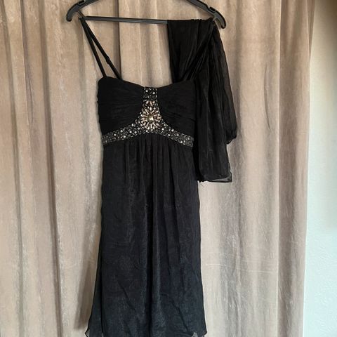 Pen svart kjole fra floyd med v hals og to lommer foran. Brukt en gang. Kjøpt julen 2025. Lett og behagelig stoff, har underkjole.