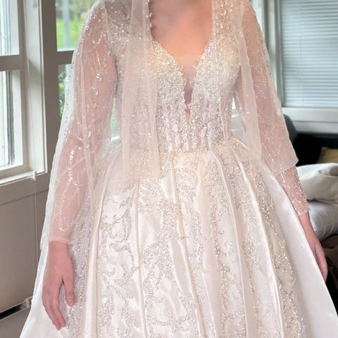 • Lengde: Tilpasset meg som er 164 cm høy, brukt med brudesko med 9 cm hæl