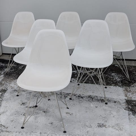 Fire spisestoler/ sidestoler i nydelig Eames Vitra-design selges kr 500,- pr stol eller 2000,- samlet. Meget god stand.