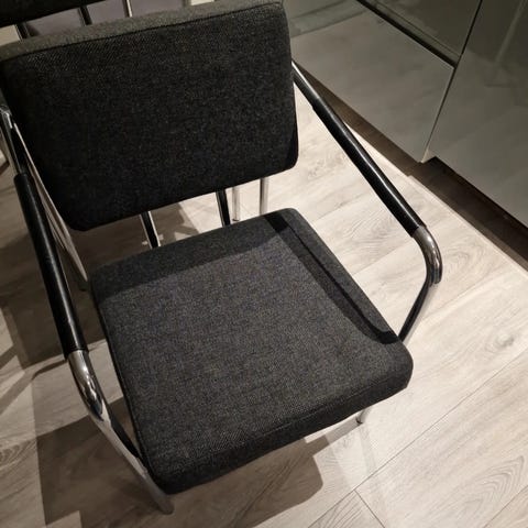 Hattefjäll kontorstol fra IKEA. Lys grå med hvitt understell. Lite og pent brukt. Ingen synlig slitasje eller bruksmerker. Justerbar i rygg og høyde. Hjulene låses når stolen ikke er i bruk for å holde den sikkert på plass. Se IKEA sine sider for mer informasjon.