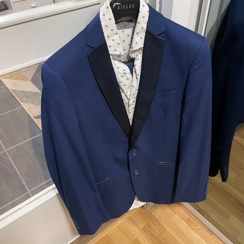 Dressen er brukt en håndfull ganger. Den er renset og presset. Det er et lite merke på jakken. Anbefaler at man ser den live for å vurdere selv.