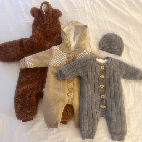 Liten klespakke med fem hvite ubrukte bodyer i bomull til baby selges. Størrelse er i utgangspunktet 0-3 måneder, men siden de virker litt større så vil jeg heller si 1-6 måneder avhengig av baby😊