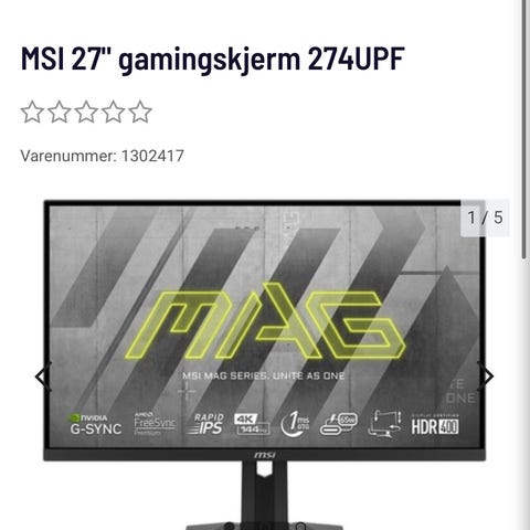 Kjøpt for under en måned siden, har ikke eske, selges bare med skjerm og kabel.