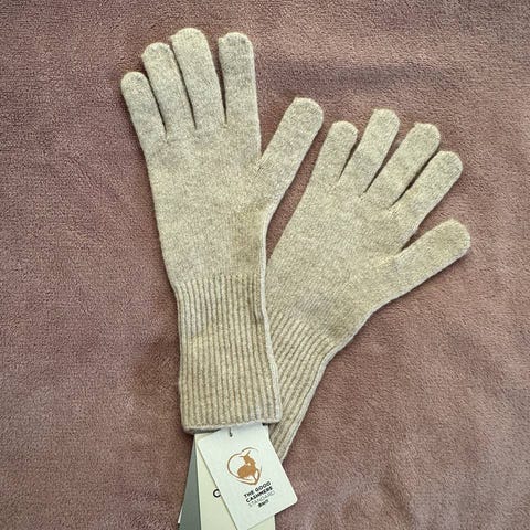 Rutete hansker i sort,grå og hvit med sløyfe. De er 80% ull
