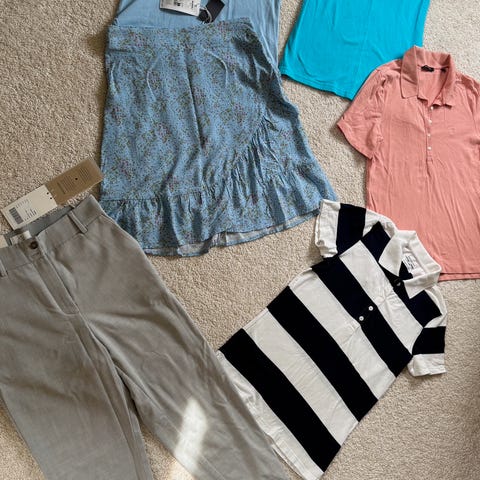 Jeg selger en flott pakke med klær. Rene varer i bomull og ull, gode merker. Ubrukte ting og bare brukt en gang. Skinn vesken er derimot god brukt, men i veldig god stand. Et skjerf» til å bli glad av»😊 i flotte farger, dette er polyester.